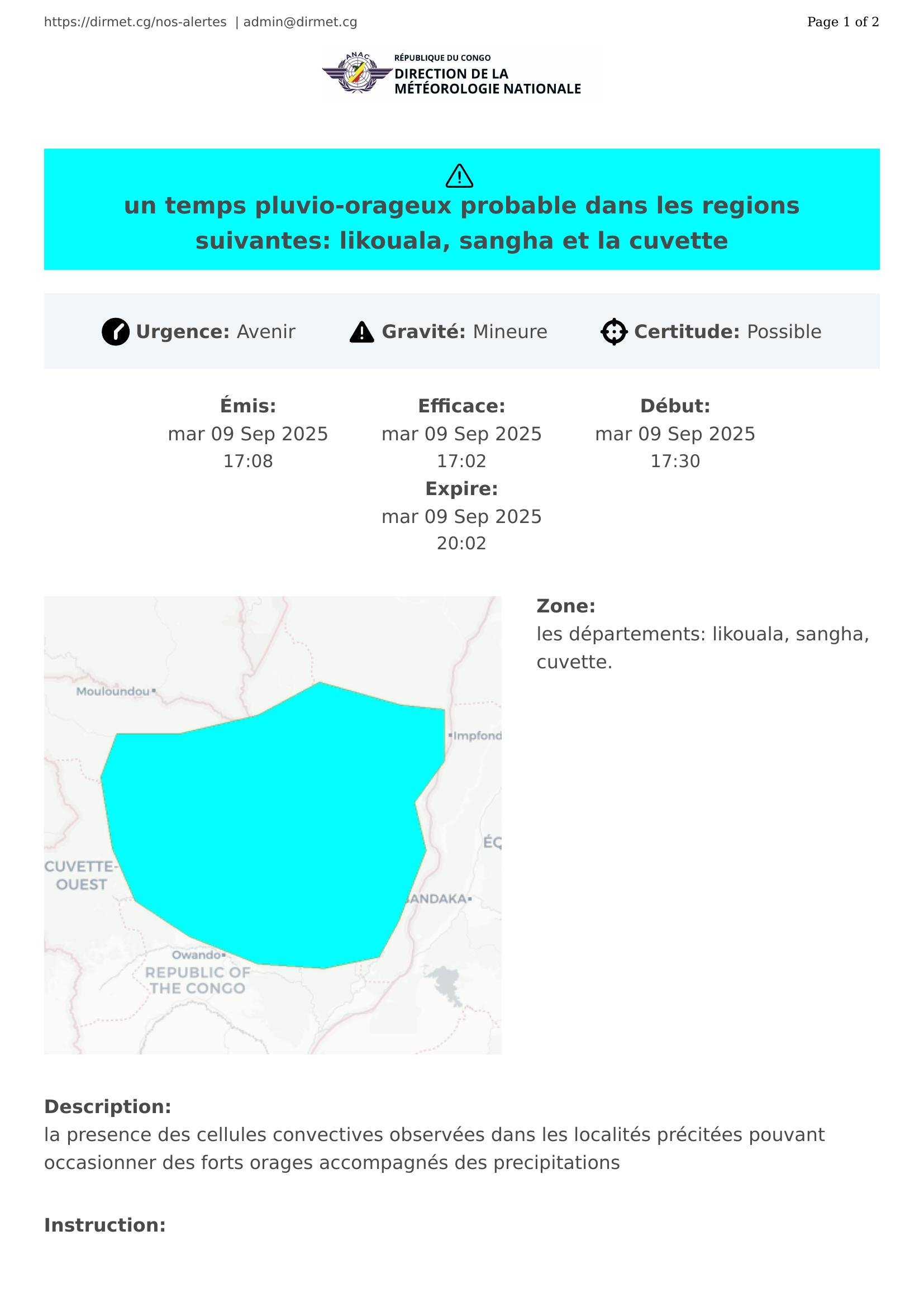 un temps pluvio-orageux probable dans les regions suivantes: likouala, sangha et la cuvette